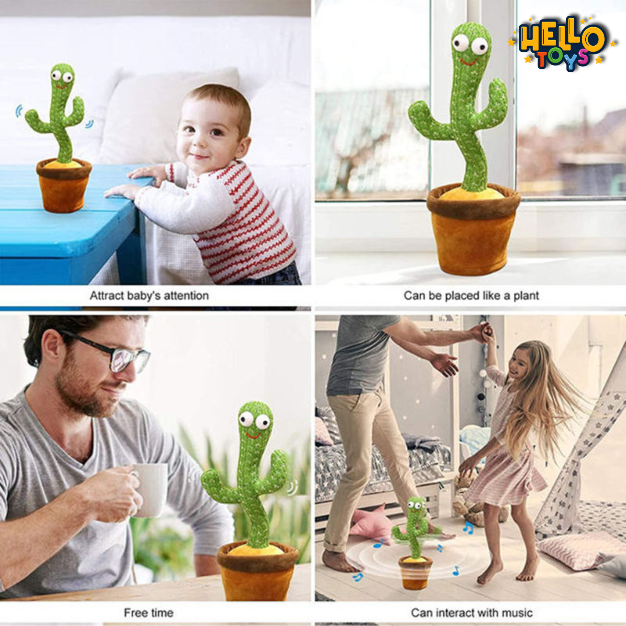 Bring laughter and entertainment home with the Hello Toys Dancing Cactus Toy. This interactive plush toy dances, sings, and repeats what you say in a funny voice — making it an instant favorite for kids and even adults!